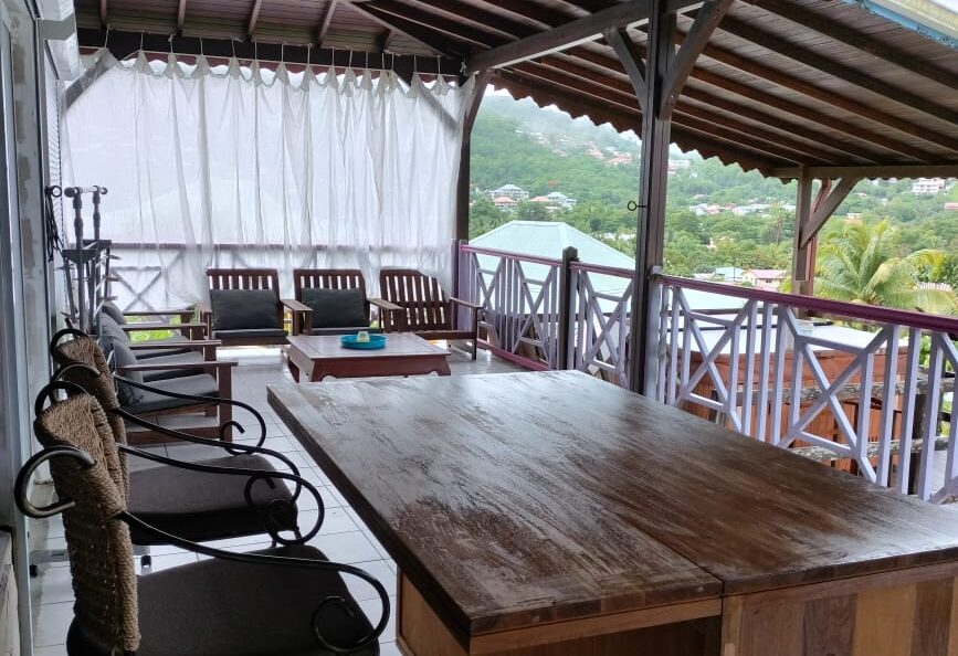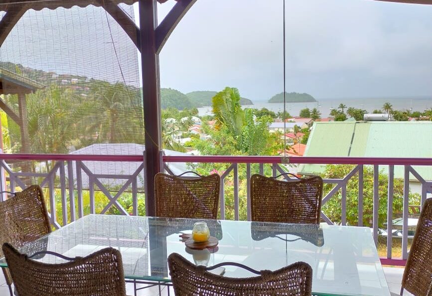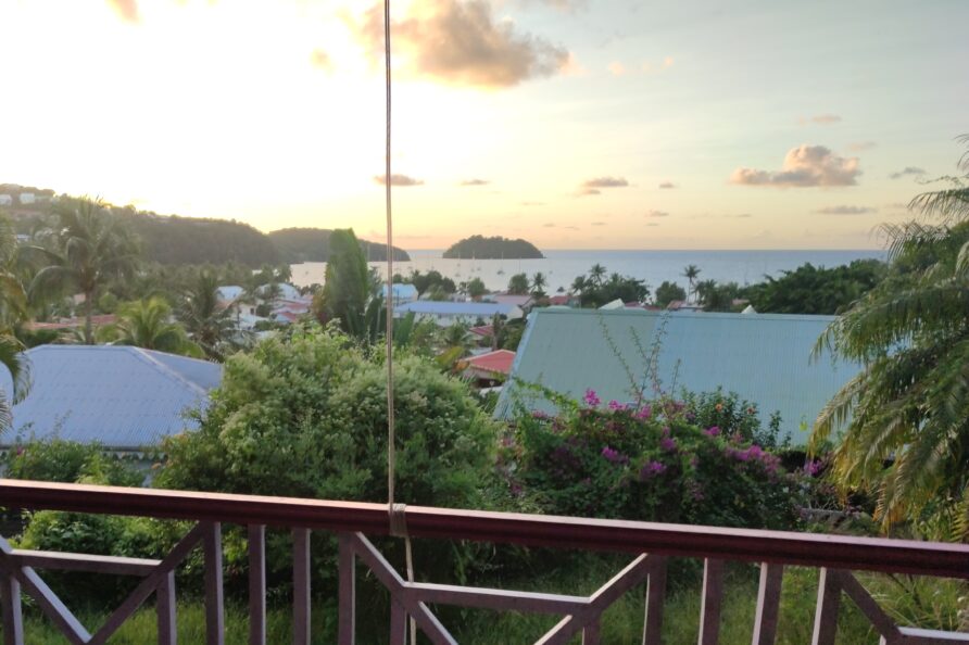 Prenez le temps de savourer votre cocktail prefere sur la terrasse , avec une magnifique vue sur la baie de l’anse a l’ane et des couchers de soleils dignes des plus belles cartes postales